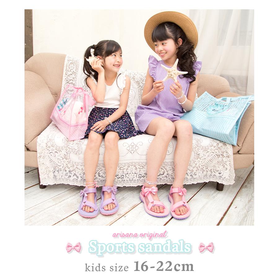 キッズ サンダル 女 女の子 子供 子ども リボン スポーツサンダル