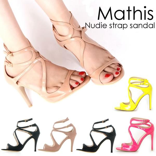 返品 交換不可 サンダル レディース ヒール ピンヒール 痛くない 6cm ストラップ 華奢 クロス 細ストラップ シンプル