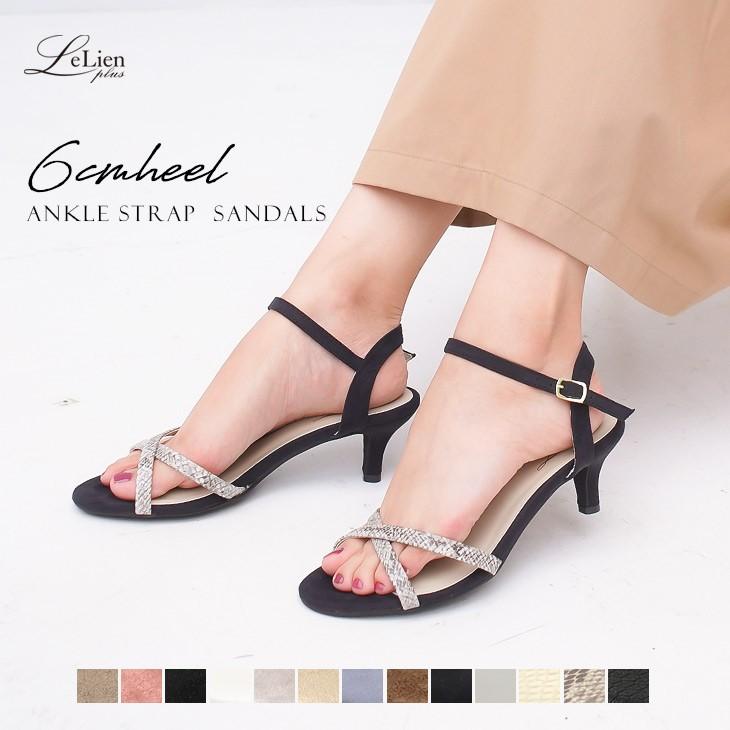 サンダル レディース ヒールサンダル ハイヒール シューズ アンクルストラップ 美脚サンダル ピンヒール セクシー 6cmヒール