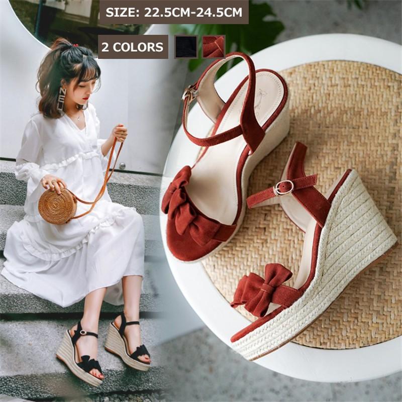 ビーチサンダル レディース リボン 歩きやすい 厚底サンダル ヒール 海