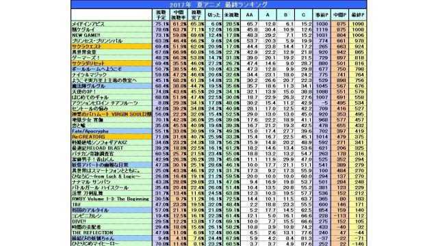 2017年夏アニメ最終ランキング結果 エキストラのくせにブログ書いて