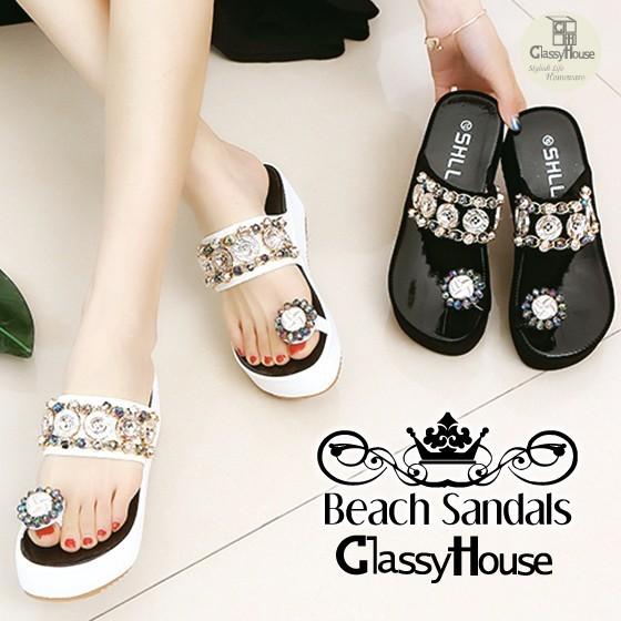 ビーチサンダル お洒落 ヒール6cm エスニック ビジュー付きお洒落