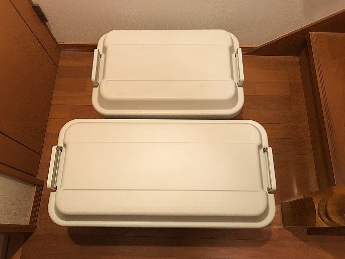 無印の頑丈収納ボックスに3coinsコンテナがシンデレラフィット