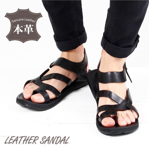 楽天市場 ストラップレザーサンダル 本革サンダル メンズサンダル