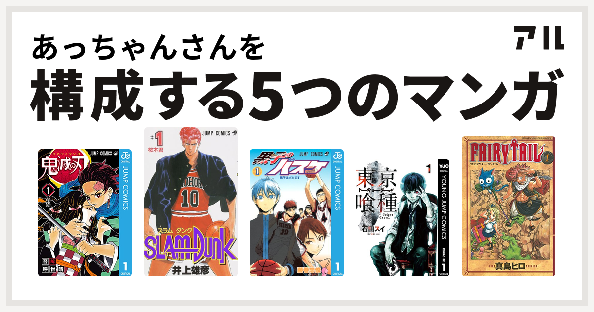 あっちゃんさんを構成するマンガは鬼滅の刃 Slam Dunk スラムダンク