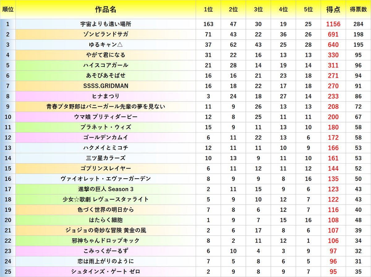ゆう On Twitter 2018年5chベストアニメランキング結果です 総