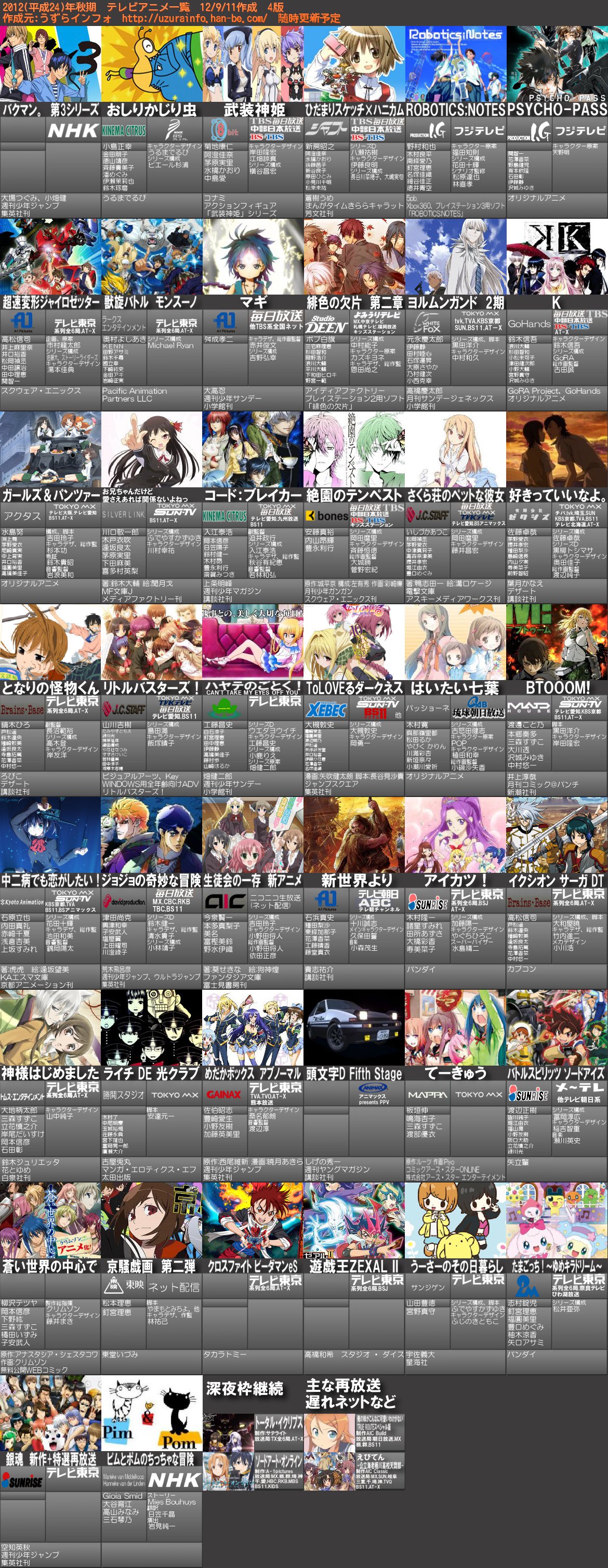 2011年秋 9月期 新アニメタイトル一覧 公式サイトまとめ 放送情報